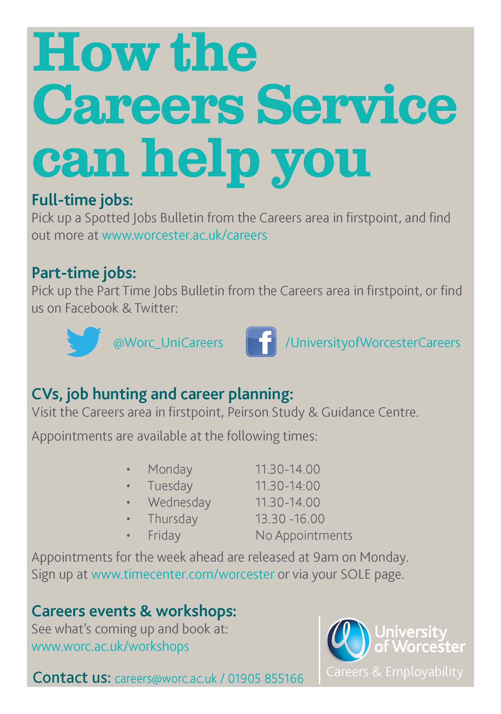 For more information about our services, see our webpages: http://worcester.ac.uk/careers/