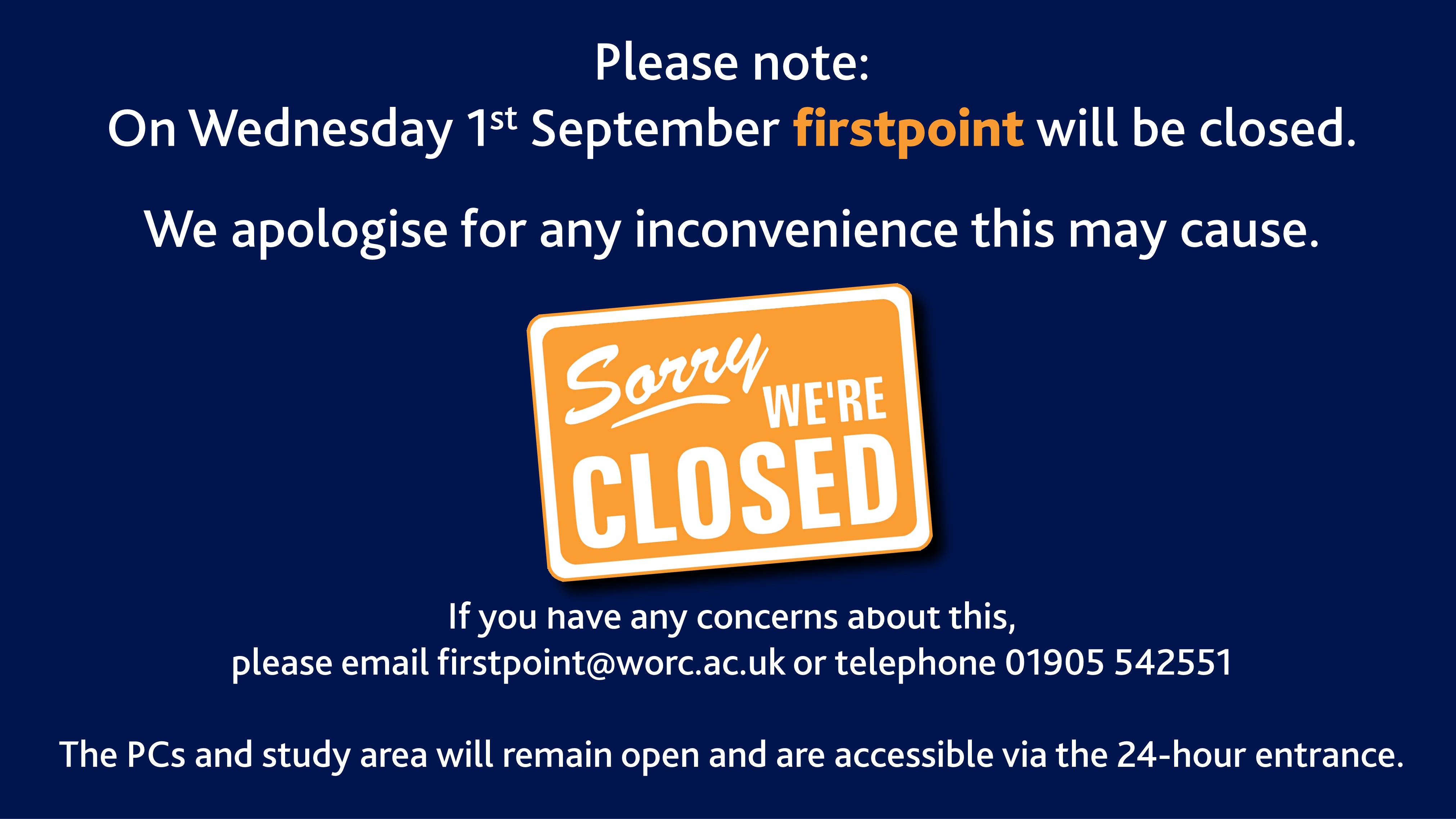 If you have any concerns about this, please email firstpoint@worc.ac.uk or telephone 01905 54 2551.