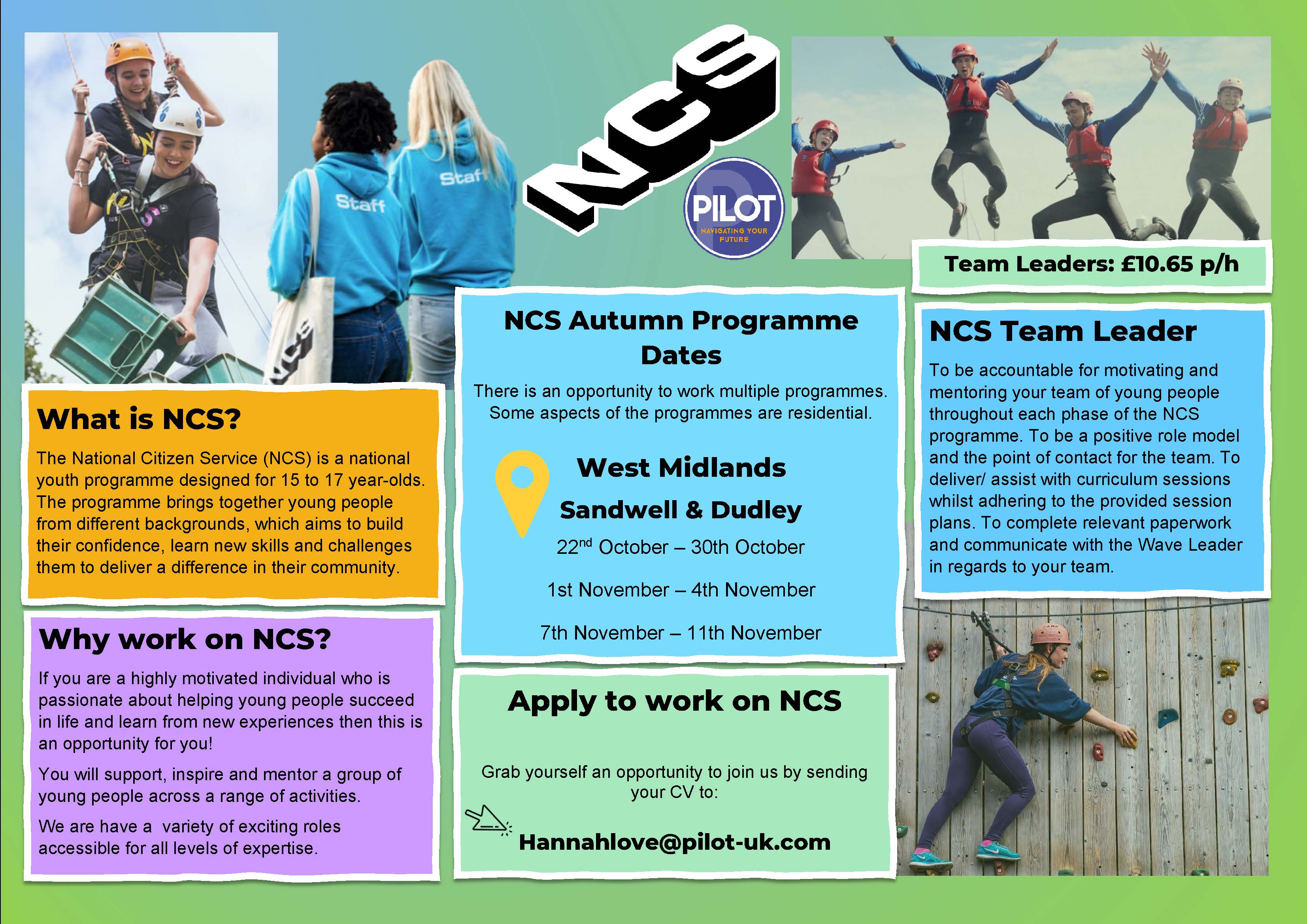 The National Citizen Service (NCS) is a national youth programme designed for 15 to 17 year-olds. The programme brings together young people from different backgrounds, which aims to build their confidence, learn new skills and challenges them to deliver a difference in their community.