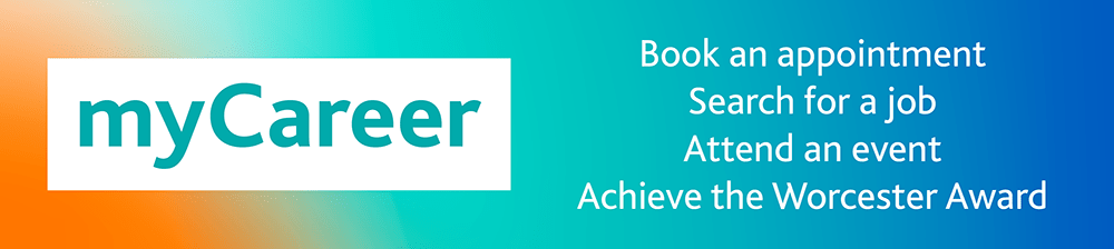 myCareer is your online home for all things Careers & Employability related! Whether you’re searching for a job, booking a careers appointment or event, completing the Worcester Award or just want to ask us a question – myCareer is the place to go.