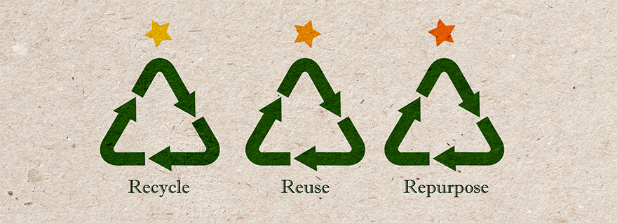 All the decorations you will see on these trees have been lovingly crafted through reusing, recycling, and repurposing. It’s Christmas, regifted.
